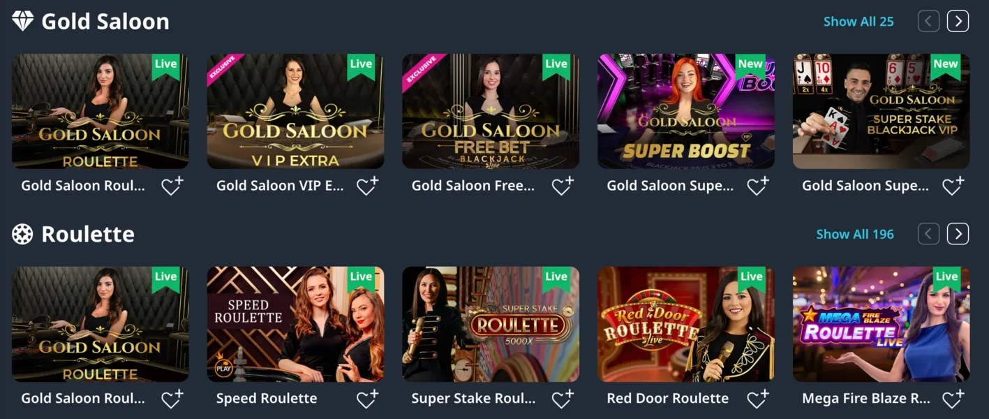 - Cashback Live : Obtenez 25 % jusqu'à 200 € sur vos pertes dans la section casino en direct.